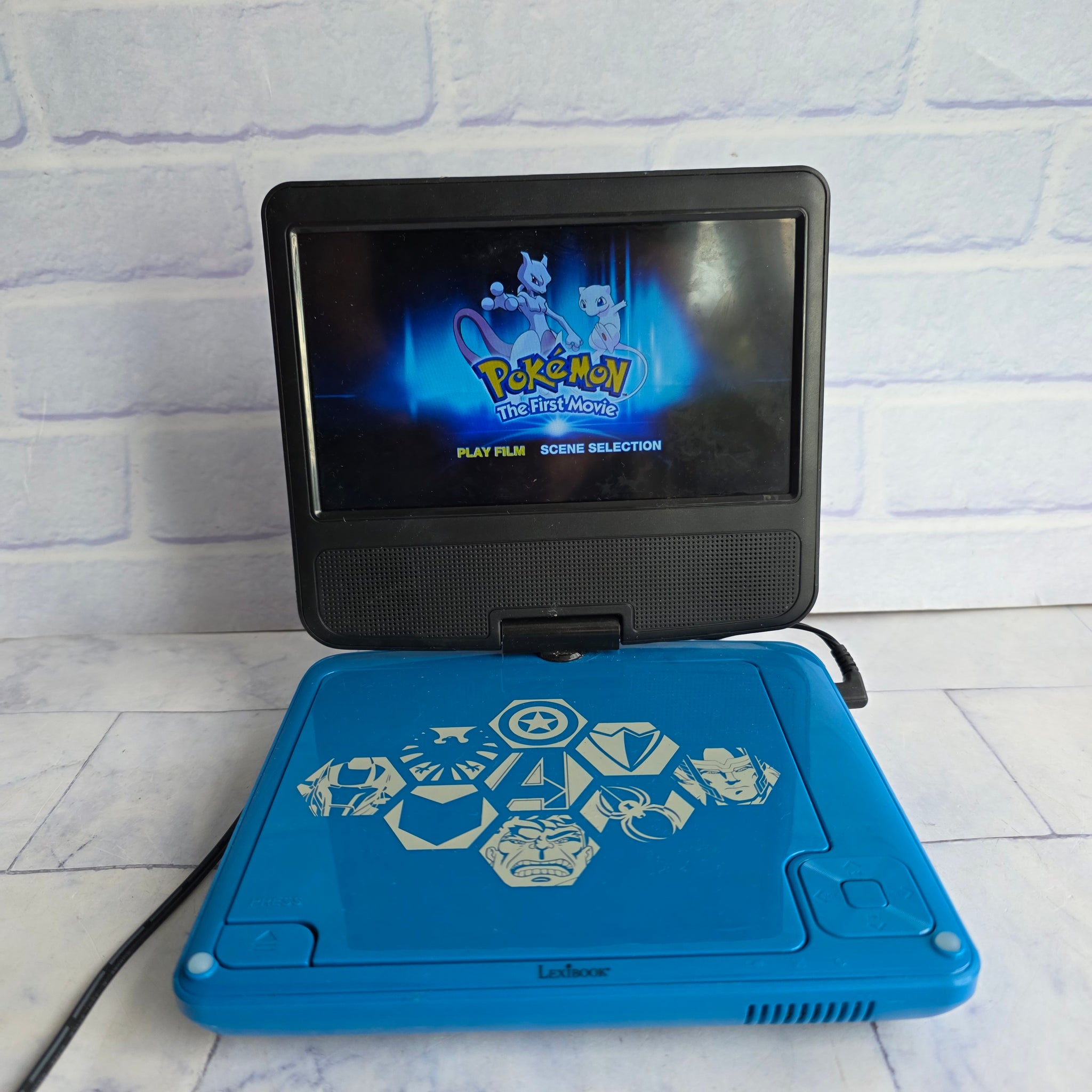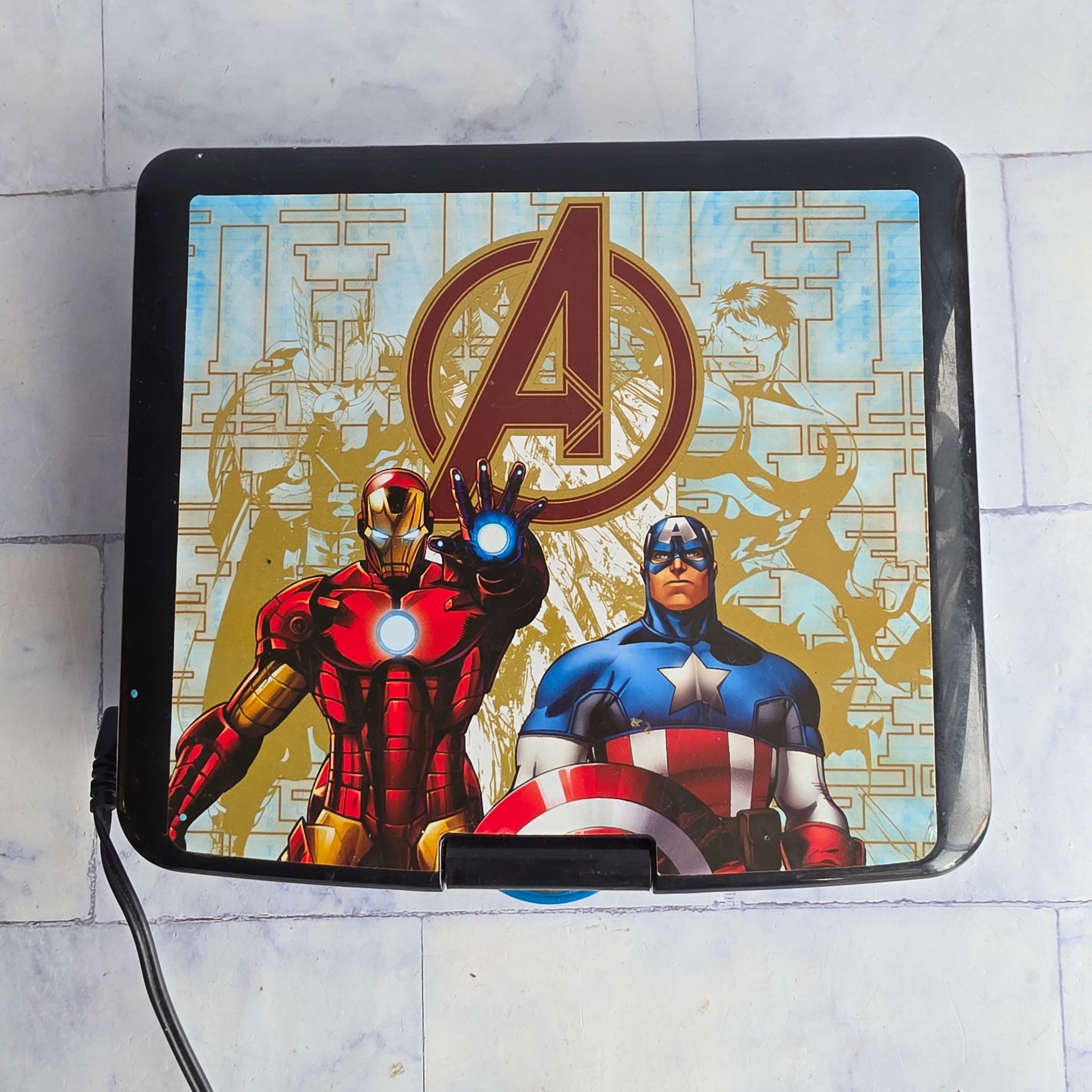 Rare Avengers motif Lexibook DVD player. Has swivel screen so it can be turned anyway or folded up to be like an ipad.