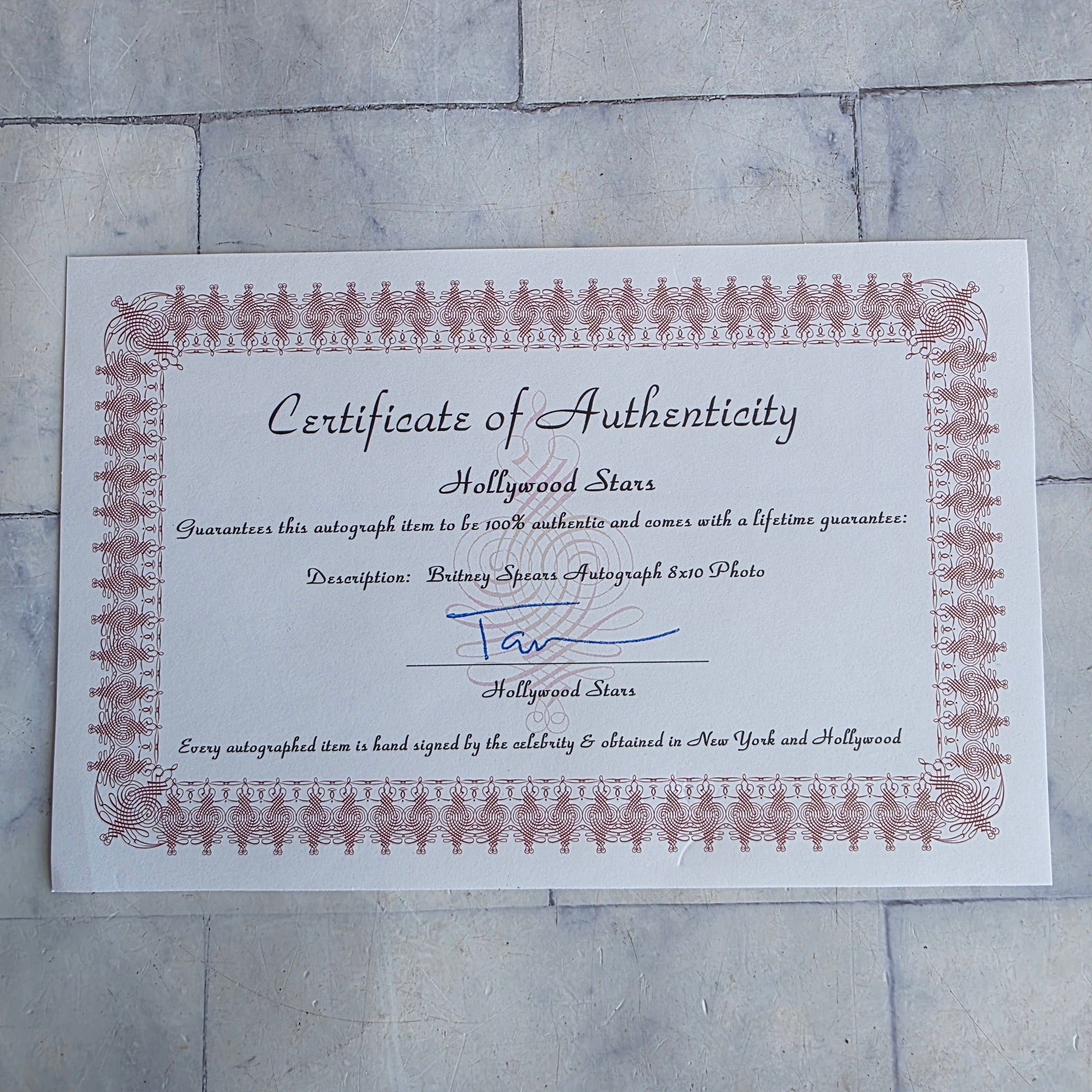 Signed Britney Spears photo with Certificate of Authenticity by Hollywood Stars.