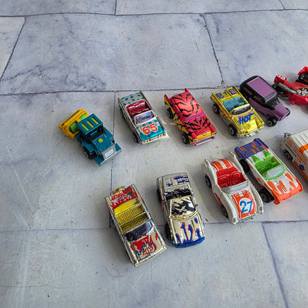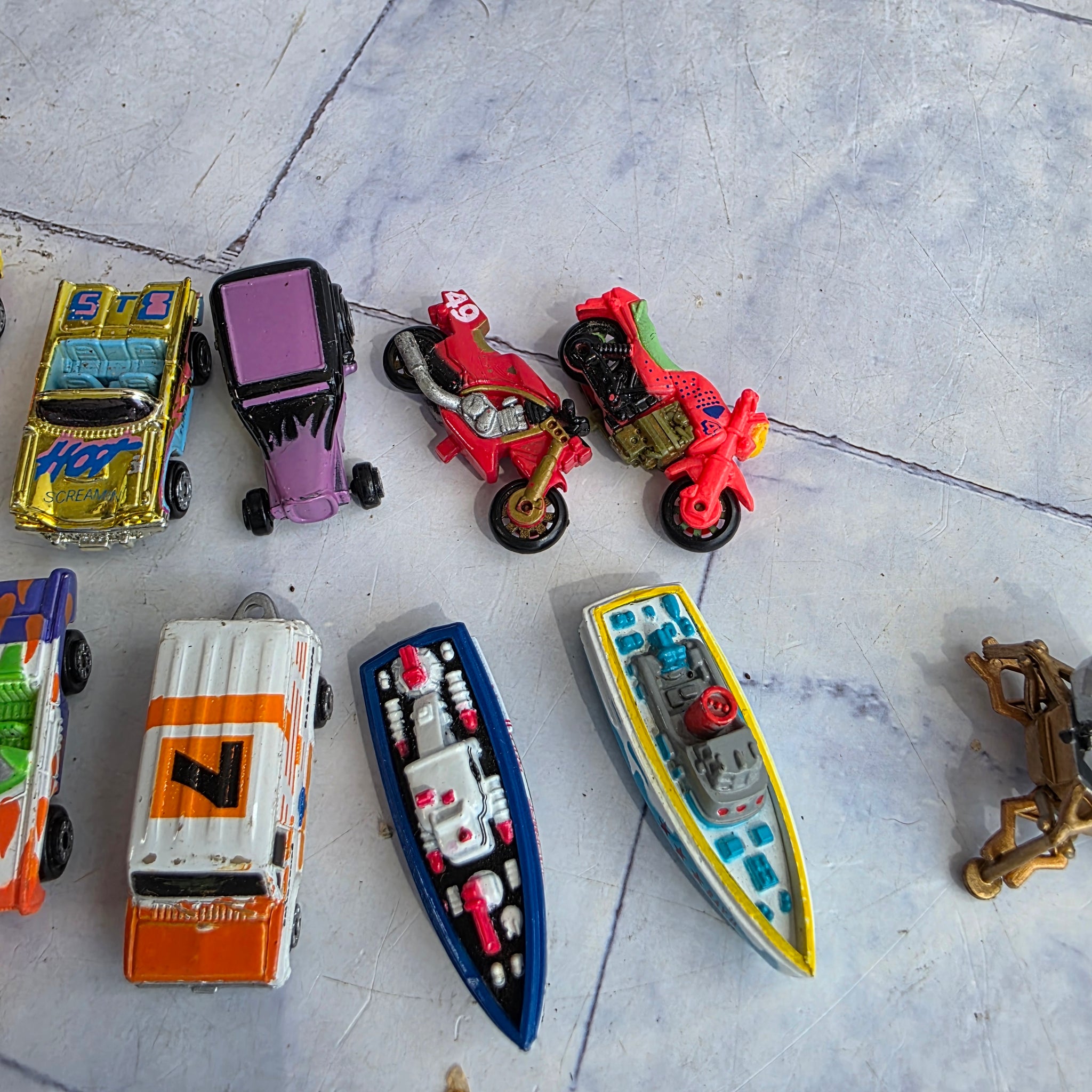Comes with 15 micros with varying vehicles from sports cars to lorries to bikes and boats. There is also the NASA Lunar Lander but note that one of the legs is broken, ive included this anyway as is a very cool and rare micro.