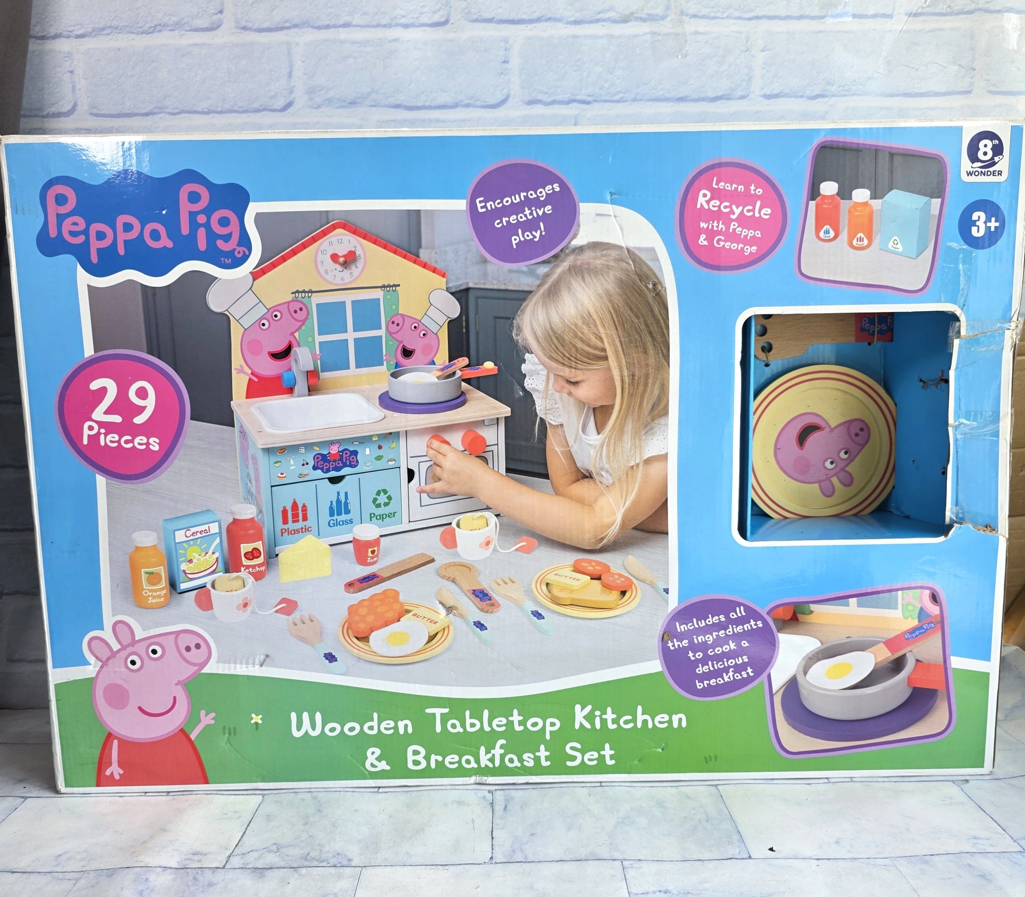 Peppa Pig Wooden Kitchen Breakfast Set With Accessories + Food - New In Box