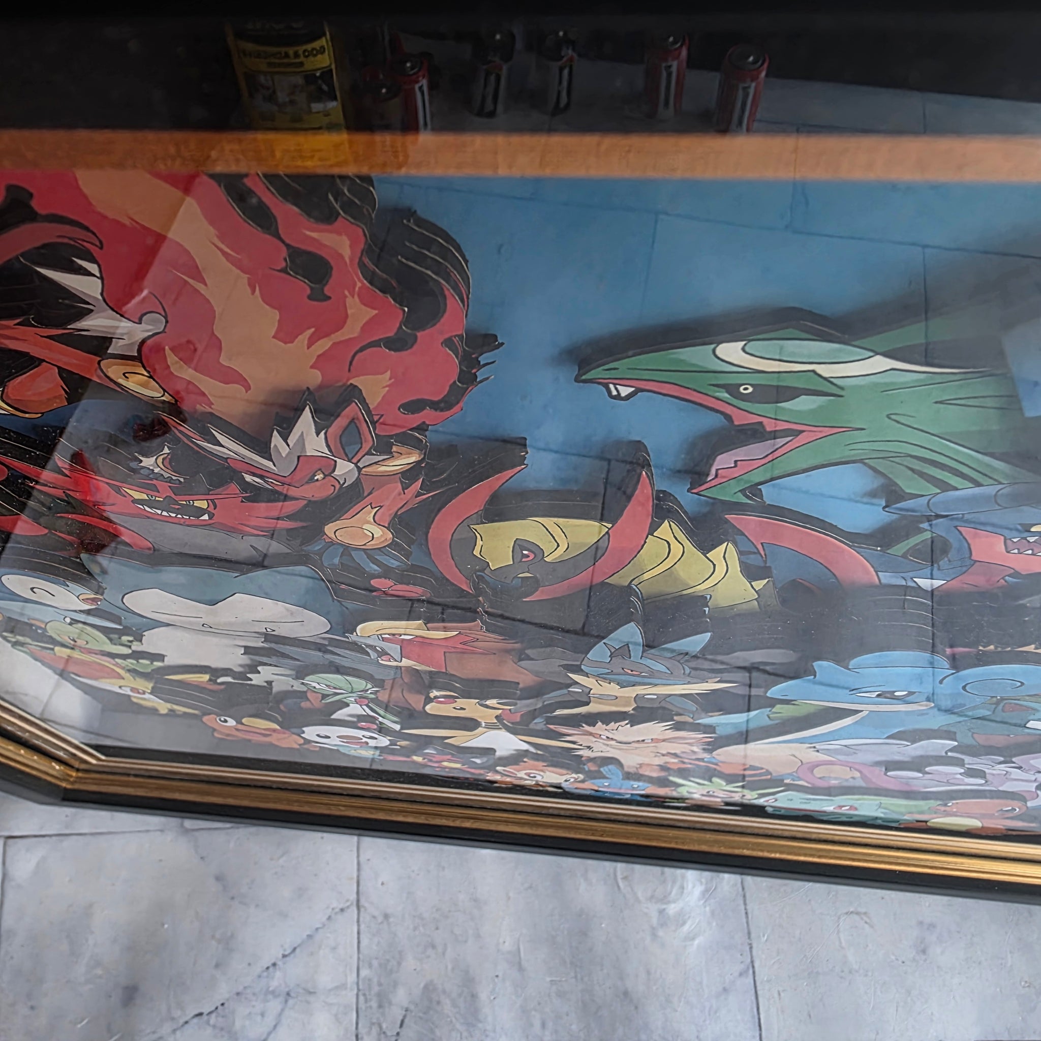 Each Pokemon is hand cut and placed and are 3D. See photos for more detail.