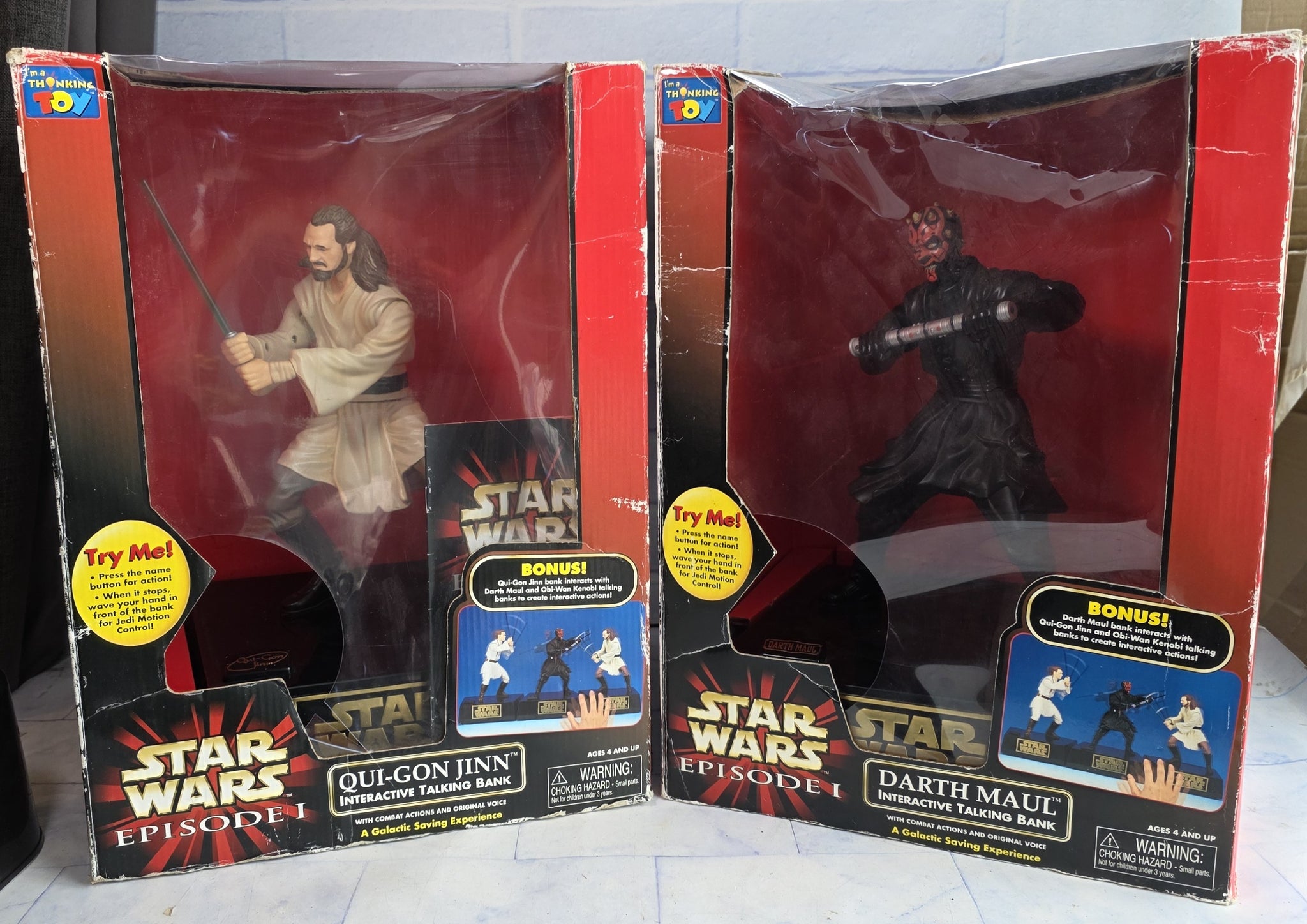 Star Wars Darth Maul Qui Gon Jinn Interactive Talking Bank Bundle Vintage 1999