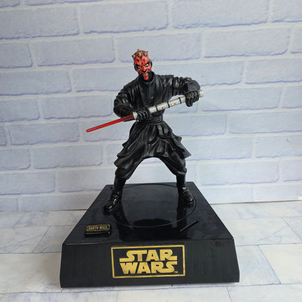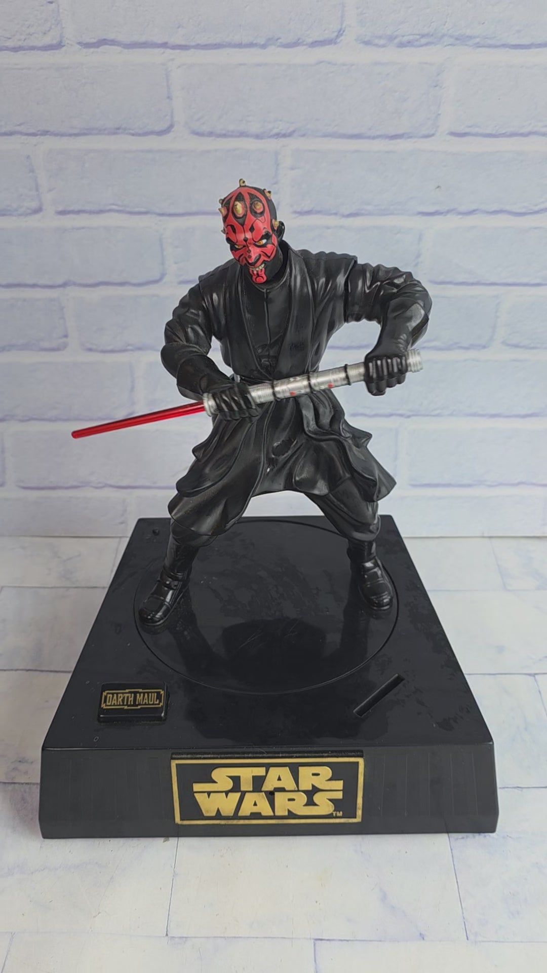 Darth Maul is in original box but is used. Have shown a video of it in action, his blade extending, the sound and movement it does. Box in good condition, again has some minor outer wear.